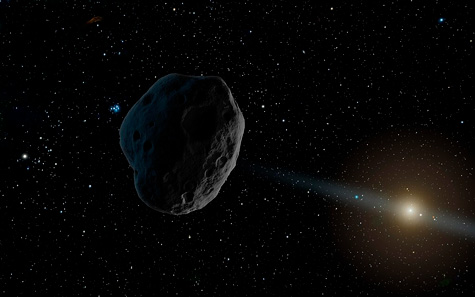 Художественная иллюстрация астероида 2016 WF9, пересекающего орбиту Юпитера по пути к Солнцу