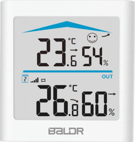 Цифровой термогигрометр BALDR B0135T2H2 – понятный и надежный инструмент для наглядного контроля микроклимата в доме, офисе или мастерской и погоды на улице. Он одинаково информативен при работе как с внутренними показаниями, так и при подключении наружных датчиков для контроля атмосферы за окном. Прибор помогает поддерживать комфортные и безопасные условия круглый год и видеть общую картину измен
