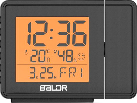 Проекционные часы BALDR B0367STHR объединяют в одном приборе настольные часы с будильником, календарь и инструмент для мониторинга микроклимата; дополняет их функциональность встроенный проектор времени и температуры – проекция с информацией направляется на стену или потолок. Это превращает часы в удобный центр контроля времени и комфорта в комнате: вся важная информация доступна с первого взгляда
