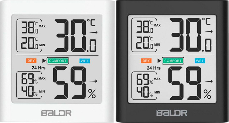 Цифровой термогигрометр BALDR B0135TH был создан для наглядного и понятного контроля микроклимата дома и погоды на улице. Большой контрастный ЖК‑экран одновременно показывает текущую температуру и влажность, а стрелка тренда подсказывает, растут или снижаются показатели. Даже пользователю без специальной подготовки будет легко оценить ситуацию с одного взгляда и вовремя скорректировать условия в помещении.