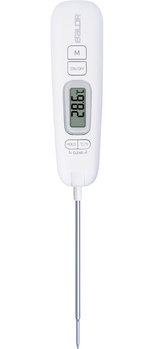 Термометр кулинарный (термощуп) BALDR B0344T помогает готовить уверенно и качественно: с этим аксессуаром вы достигнете нужной степени прожарки мяса и соблюдете внутреннюю температуру сложной выпечки и десертов без необходимости больших проколов и надрезов. Прибор одинаково уместен на домашней кухне и на даче у гриля, позволяя пользователю держать под контролем мясо, птицу, рыбу, сдобу и горячие напитки, а также сиропы и масло для фритюра.